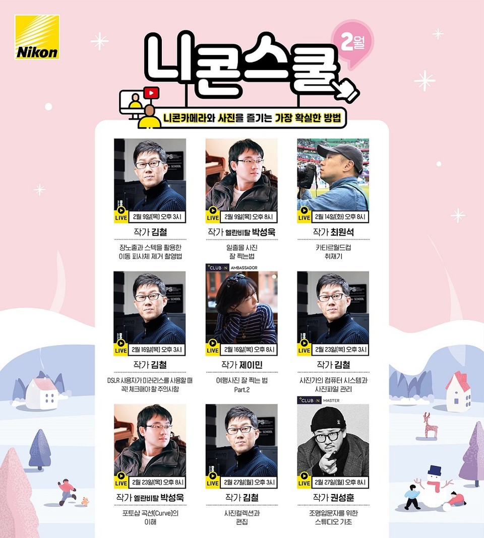 니콘스쿨의 모든 강의는 사전 신청 없이 누구나 무료로 들을 수 있다. 수강을 원하는 고객은 강의 시간에 니콘이미징코리아 공식 유튜브 채널로 접속하면 된다.