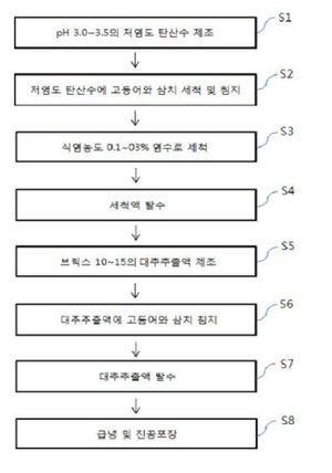 [비즈월드] "본 발명은 어류를 염분농도 0.1 내지 0.3%, pH 3.0 내지 3.5 범위로 조절한 저염도 탄산수로 세척하고, 브릭스(Brix)가 10 내지 15 정도의 대추추출물에 침지처리하는 방법의 사용으로 고등어와 삼치의 비린내를 제거하고 지방산화를 방지하는 방법에 관한 것이다.보다 상세하게는 신선도가 급격히 저하되는 어류인 고등어 및 삼치를 pH 3.0 내지 3.5의 저염도 탄산수로 세척함으로써, 미생물 증식 억제를 통한 선도 유지와 더불어 특유의 비린내와 알레르기 유발 물질인 히스타민(Histamine)의 생성을 제어시