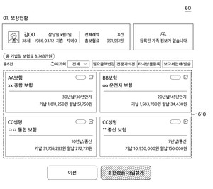 [비즈월드] 한화생명의 주력 자회사 한화생명금융서비스가 보험 가입자들이 각각 다른 보험 상품을 한눈에 비교하고 부족한 보장까지 확인해 분석할 수 있는 시스템을 구축했다.22일 금융권에 따르면 한화생명금융서비스는 '보험 가입 정보를 제공하기 위한 전자 장치 및 그 방'이라는 명칭의 특허를 지난 2023년 3월 27일 출원(출원번호 제1020230040016호)해 지난 7월 3일 등록(등록번호 제102682921호)받았다.보통 보험 가입 과정은 개별 가입자가 보험사 시스템에 접속해 해당 상품 가입을 위한 절차를 거치는 방식으로 이뤄진다