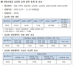 [비즈월드] 생명보혐협회(협회장 , 이하 협회)는 지난 10월 30일 국내 생명보험 5개사(한화생명, 삼성생명, 교보생명, 신한라이프생명, KB라이프)가 도입한 '사망보험금 유동화 제도'가 안정적인 운영과 소비자의 자산 운용 선택폭을 넓히는 실질적인 제도로 자리 잡아가고 있다고 18일 밝혔다.이 제도는 도입 초기이지만 소비자의 자발적인 신청이 이어지고 있으며, 유동화 비율은 높이고 지급 기간을 단축하는 형태가 주를 이루고 있다는 것이 협회의 설명이다.해당 제도는 보험 모집 설계사 등을 통한 신청은 불가하며, 고객이 직접 고객센터 또