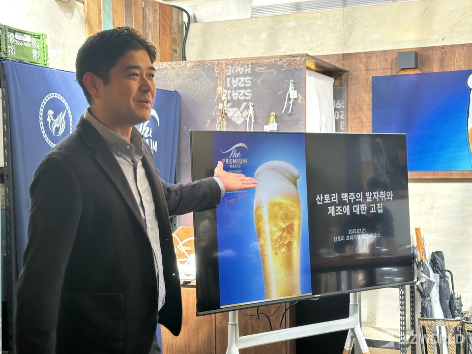 쇼고 오가와 매니저는 "본격적인 사업은 지난 1963년 무사시노 맥주공장 설립과 함께 시작됐다. 이후 1967년 산토리 생맥주를 일본에서 최초로 출시했고 1986년에는 맥아 100% 맥주인 산토리 몰츠를 선보였다"면서 "1989년에는 일본의 유명 양조가 야마모토 류조가 사지 케이조 회장의 영향을 받아 세계 최고의 맥주를 만들겠다는 이념으로 수백가지 기술을 시도해 몰츠 슈퍼 프리미엄을 탄생 시켰는데 이것이 2003년 선보인 더 프리미엄 몰츠가 된 것"이라고 설명했다.