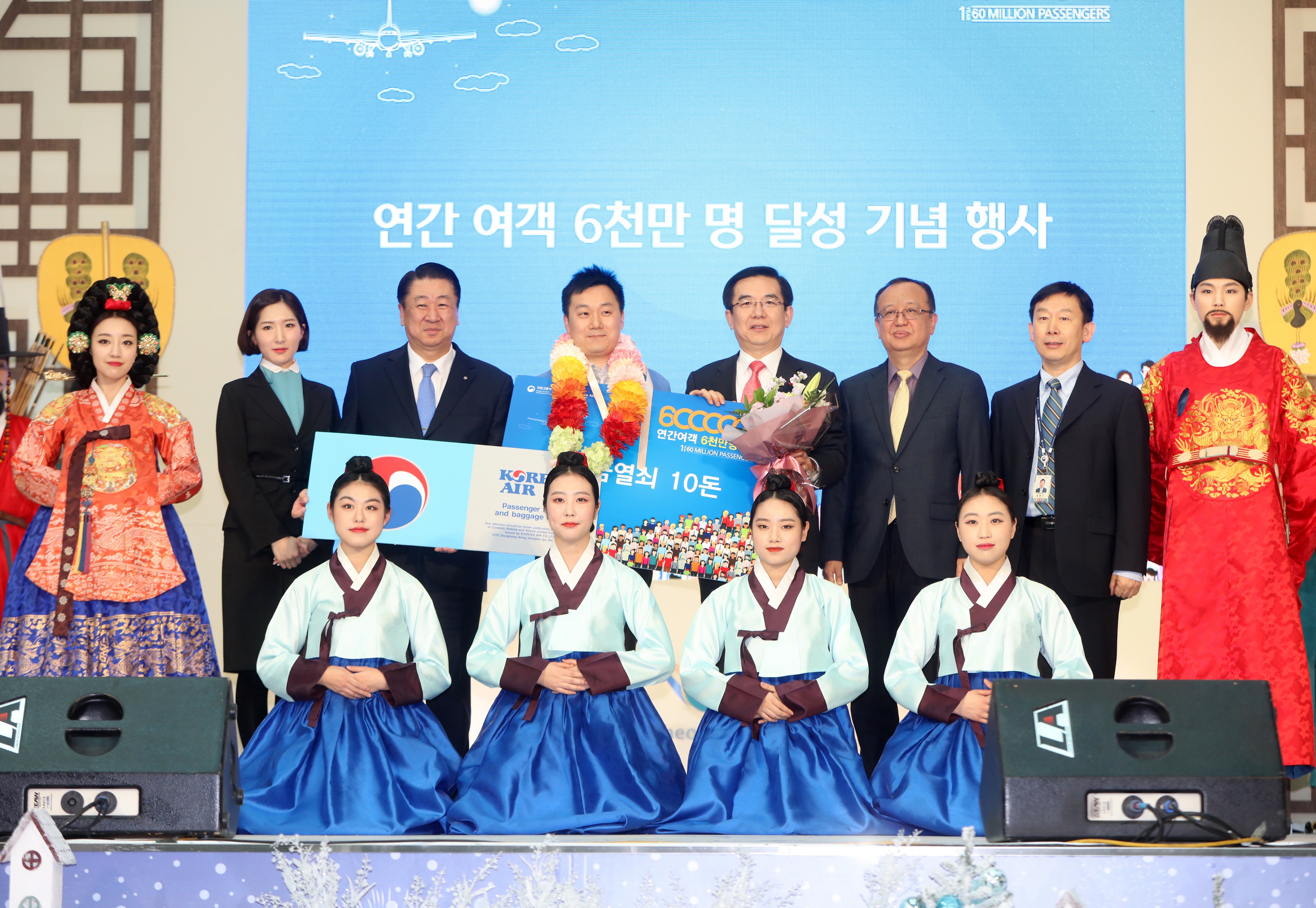 인천공항공사는 이를 기념하는 행사를 여객터미널 밀레니엄홀에서 열고, 이날 낮 12시경 푸동발 KE896편으로 인천공항에 도착한 6000만 번째 여객 쑤 레이(SU Lei, 남, 중국 국적) 씨에게 황금열쇠와 왕복항공권을 선물로 증정했다.