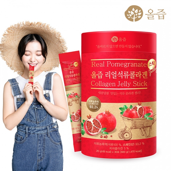 이와 함께 올즙은 '리얼 석류콜라겐 스틱'을 출시한다. 이 제품은 석류 약 1.2개와 탱글한 콜라겐 1000㎎을 1포에 담은 젤리스틱으로 휴대와 섭취가 간편한 것이 특징이다.