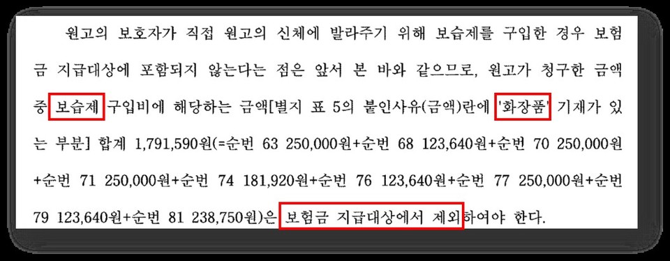 문제는 실손보험사들이 근거로 내세운 대법원 판결이다. 대법원은 화상 치료를 목적으로 사용한 보습제에 대한 보험금 지급 여부를 다투는 재판에서 "(실손보험에서 보장하는) 입·통원 제비용은 의사가 주체가 되는 의료 행위로부터 발생한 비용만을 의미한다"고 한 2심 판결을 그대로 확정했다.
