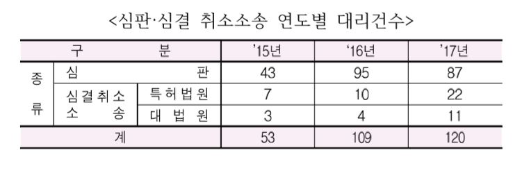 또한 승소율도 지난 3년 동안 76.8%로 특허심판이나 소송비용을 감당하지 못해 어려움을 겪는 저소득층 및 영세기업에 실질적인 도움이 되고 있다는 것입니다.