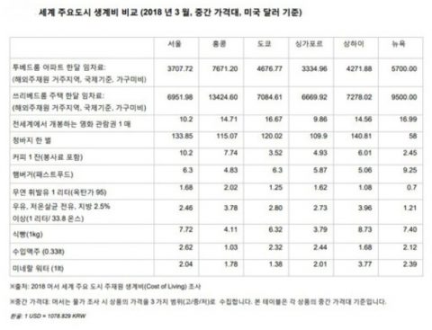 한편 이번 머서의 조사에서 생계비 및 주거 임대료 비교 수치는 지난 3월 머서의 전 세계 주재원 생계비 조사 결과를 토대로 계산했다고 합니다. 2018년 3월 환율과 상품 및 서비스에 대한 머서의 인터내셔널 바스켓을 기본 측정값으로 사용했다고 합니다.
