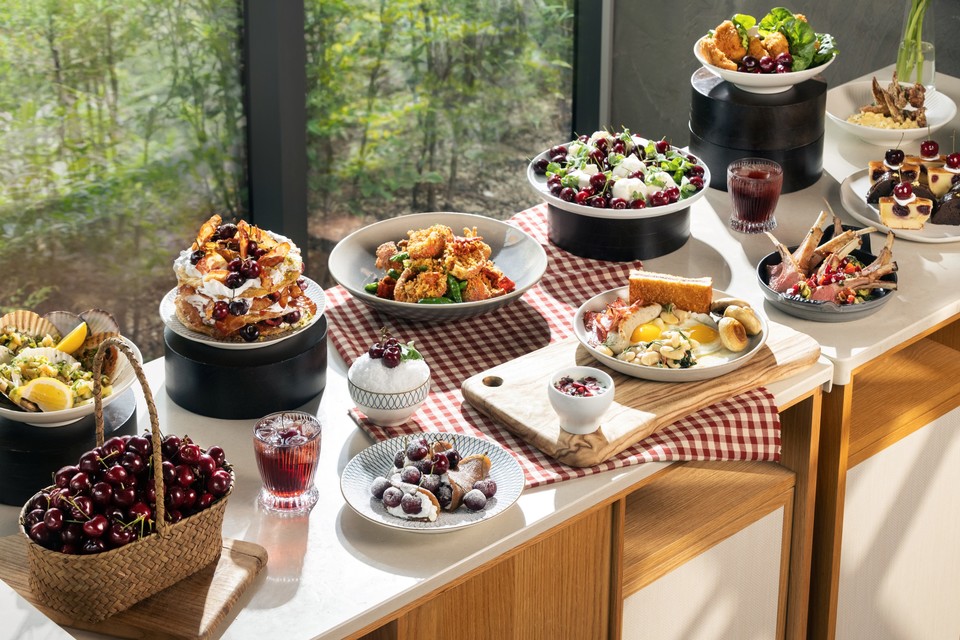 디저트로는 새콤달콤 과즙이 풍부한 ▲생체리를 비롯해 ▲체리 시나몬 크렘 브륄레 ▲체리 타르트 ▲체리 흑임자 치크케이크 등이 풍성하게 차려진다. 입안을 풍미로 가득채워 줄 메인 메뉴로는 ▲채끝 등심 스테이크 ▲바삭한 돼지고기와 새우 ▲체리 빙수가 준비됐으며, 음료로는 시원한 웰컴 드링크를 제공, 커피 또는 차 한 잔을 선택해 즐길 수 있다.