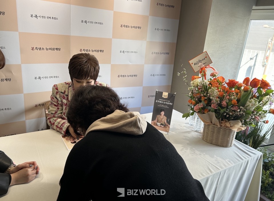 [비즈월드] 본아이에프가 보양식 브랜드 '본흑염소능이삼계탕' 방배 1호점의 론칭을 기념해 18일 오후 전속 모델인 트로트 가수 김연자의 오프라인 사인회를 개최했다.