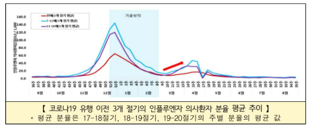 대개 호흡기 감염병은 주로 실내에서 함께 공동 생활을 하는 학령기 소아·청소년을 중심으로 유행한다. 이에 환자 수가 학기 중 늘어났다가 방학 기간 감소하고, 개학 후 다시금 증가하는 경향이 있다.